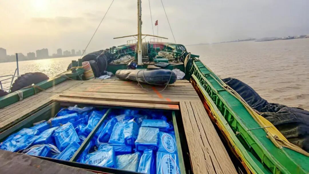 来源:人民日报微信公众号近日,浙江台州海警局跨越4省1市,历经近两年侦查,成功摧毁以李某、程某等为首的特大冻品走私犯罪团伙,共抓获犯罪嫌疑人27名,查获走私冻品616.2吨,涉案金额高达4000余万元,实现从海上到陆路的走私“全链条”打击。一次抓捕牵出谜团重重2024年1月14日深夜,台州海警局接警称,台州椒江附近海域一渔船疑似正在实施走私活动,企图在椒江海门港锚地过驳货物。借捕鱼之名行走私之实,是不法分子的惯用伎俩。