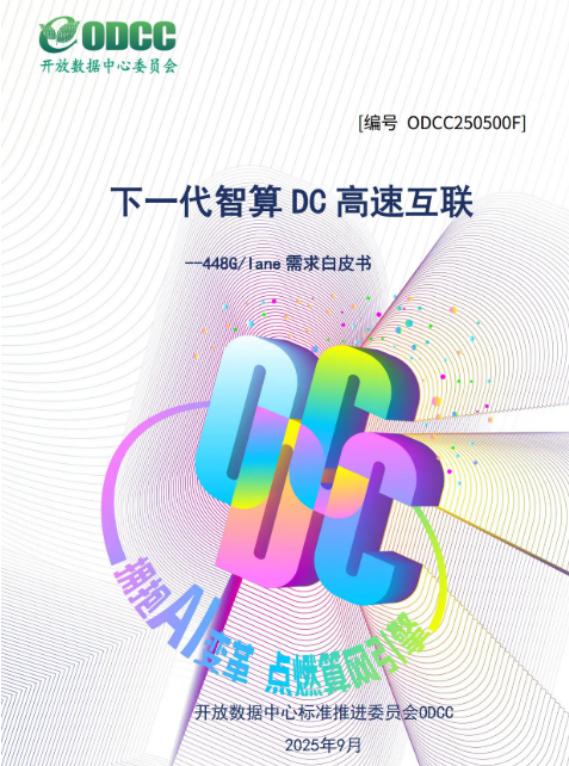 2025 年 9 月,ODCC 发布了《下一代智算 DC 高速互联 448G/lane 需求白皮书》,系统梳理了 448G/lane 技术发展背景、核心需求、技术挑战及解决方案,为智算数据中心高速互联升级提供指南。